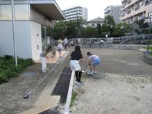 未来館の正面玄関前にて、飛距離コンテストを開催したところ、フライングディスクの形態が最も距離が長く、19.5mまで飛ばすことができました。今回は、10m以上飛ばした子供が7人いました。
