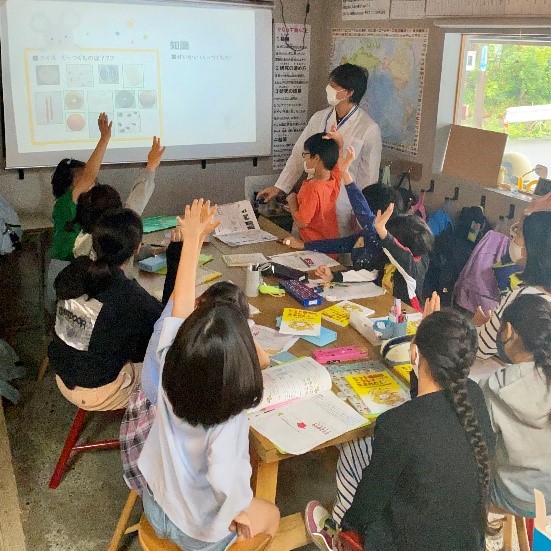 講義では、事前打合せでマナビノキから要望を頂いた通り、できるだけ子ども達に問いかけ、子ども達の発言を上手く拾うように努め、子ども達が実際に手を動かせる時間を多くした。