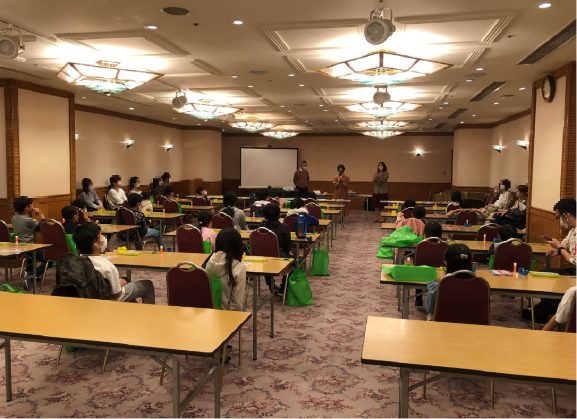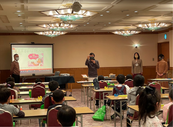 江戸川区のタワーホール船堀の2Fバンケットルームにて、小学生を対象(保護者同伴の未就学児含む)に、発明工作授業を行いました。この体験講座は、新型コロナウィルス感染症の影響により、3年ぶりの開催となりました。