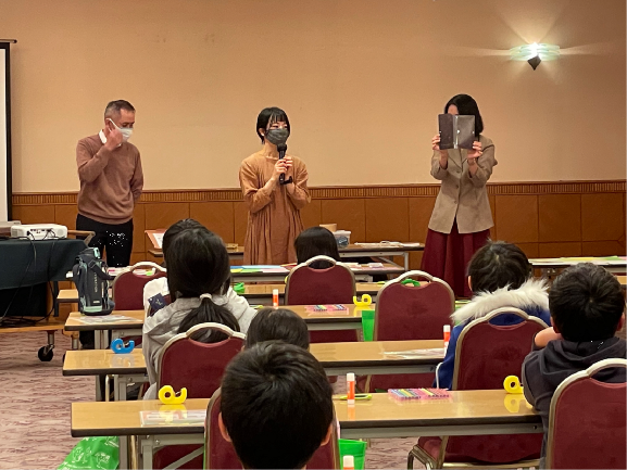 電子紙芝居を観てもらった後に、発明工作授業としてマスクケースの工作授業を行いました。発明工作授業では、まずマスクケースの簡単な説明と、イメージが湧きやすいようにサンプルを数点見てもらいました。その後、江戸川区側で用意してくれた、画用紙、ケント紙、シールやマスキングテープを使って、かっこよく(かわいく)装飾を施した個性豊かな自分だけのマスクケースを完成させることができました。出来上がったマスクケースについて、6人ほどに工夫点や、意匠性(装飾点)などをそれぞれ発表して頂きました。全員、自信をもって発表することができ、親御さんにもたいへん満足していただけました。子供たちは、自分の作品(発明)を「家で使うんだ」と言って、手提げ袋に大事に入れて持ち帰ってくれました。