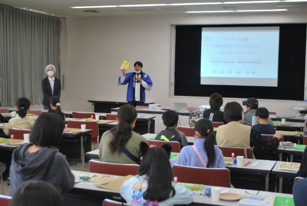 山梨県甲府市アイメッセ山梨にて、未就学児及び小学生を対象に、電子紙芝居、発明に関するクイズ、及びはつめい工作を行いました。