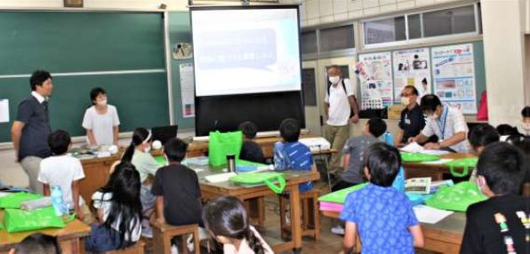 た。講義の最後には、小学生の発明品(空き缶分別箱)を紹介しました。講義中、子