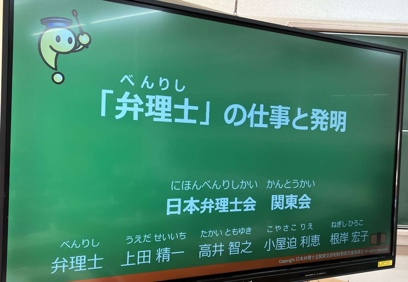 今回は、6年生児童がキャリア教育の一環として、様々な職業について調べ学習を行っている最中での出張授業でした。「知的財産権」という存在と初めて出会い、それを守る「弁理士」という職業につい知ることができたことは、児童にとって大きな財産になったことと思います。また、実際に「発明」を体験できたことで、誰にでも守られるべき権利があることを、身をもって学ぶ機会となりました。貴重なお話と経験をありがとうございました。