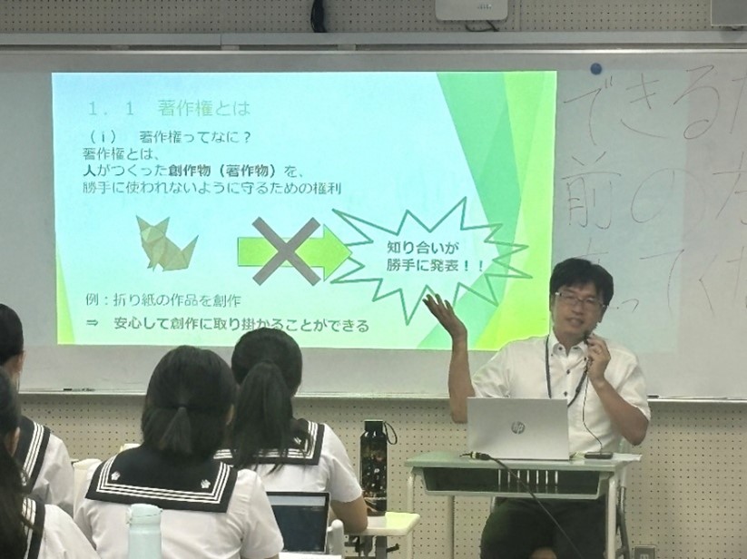 著作権という、曖昧で、難解な制度について理解してもらえるか心配していましたが、生徒の皆様にはしっかりと授業を聴講してくださったことに感謝します。また、適切な質問をいくつもいただけたことから、興味を持ってもらえ、理解してくださったのかと安堵しました。