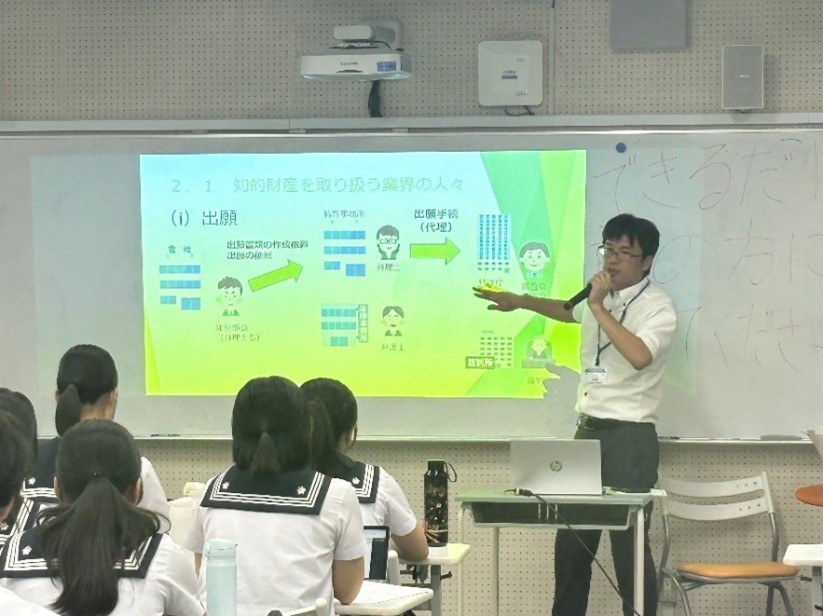 今回の授業では、生徒さんにとって普段あまり意識することのない知的財産について扱いましたが、生徒さんたちが積極的に関心を示し真剣に耳を傾けている様子が印象的でした。