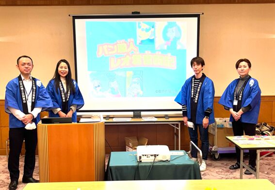 今年は予約制ではなく当日整理券配布としました。「パン職人レオ君奮闘記」の電子紙芝居でスタートし、参加者がほぼ集まったところで弁理士の紹介をはじめとする「今日から君もエジソン」の電子紙芝居の導入、そして企業の発明の紹介、身近な発明や意匠の紹介、発明クイズ、ペン立ての発明工作・作品発表を行いました。